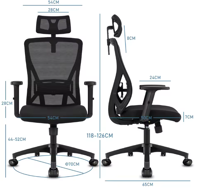 Très bon maintien du dos, même après plusieurs heures. Les accoudoirs sont solides et bien positionnés. Je l’utilise tous les jours, parfait.